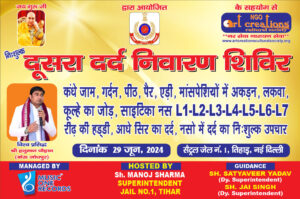 आयोजक एवं संस्था के अध्यक्ष नरेश बैसला ने बताया कि यह दर्द राहत शिविर 29 जून को जेल के कर्मचारियों एवं कैदियों और 30 जून को दिल्ली के आम नागरिकों के लिए लगाया जा रहा है। इस मौके पर इस संस्था के अध्यक्ष नरेश बैसला,उपाध्यक्ष मयंक जैन, कोषाध्यक्ष पंकज चौहान, सचिव मांगेराम, जरनल सेकेट्री रचना जैन, सरिता संयुक्त सचिव, कार्यकरणी सचिव, वेद प्रकाश, संस्था के हरियाणा के हेड वीरभान, कार्यक्रम के प्रोग्राम डायरेक्टर रिषभ बैसला भी मौजूद रहेंगे।