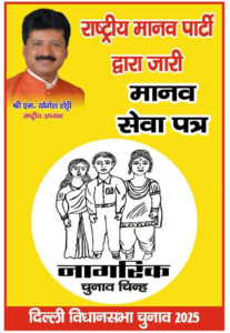 New Delhi, Rashtriya Manav Party (RMP) released its manifesto for Delhi Assembly elections 2025. The party has named its manifesto as Manav Seva Patra. Like its election symbol, the party has emphasized on the service and development of women, men and transgenders as citizens. The manifesto talks about efforts to stop regional discrimination, 100 percent employment to youth, incentive money to students, home-based employment to women, care of new born babies and making temporary employees permanent in departments. In his address to the media on this occasion,