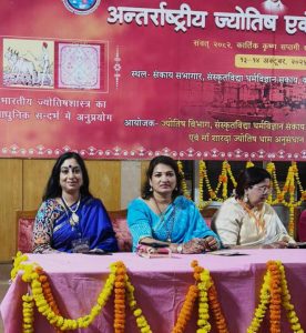 वाराणसी / उत्तर प्रदेश, ज्योतिष विभाग काशी हिन्दू विश्वविद्यालय वाराणसी एवं मां शारदा ज्योतिषधाम अनुसंधान संस्थानम् इंदौर के संयुक्त तत्वावधान में दो दिवसीय अन्तर्राष्ट्रीय ज्योतिष एवं वास्तु सम्मेलन का चर्चित आयोजन काशी हिन्दू विश्वविद्यालय (बीएचयू) के संस्कृतविद्या धर्मविज्ञान संकाय, ज्योतिष विभाग में 13 व 14 अक्टूबर को हुआ।