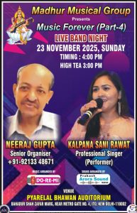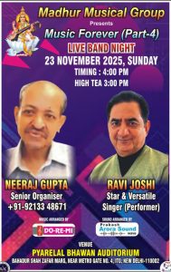 चर्चित संगीतमय शो “म्यूजिक फॉरएवर पार्ट-4” का आयोजन 23 नवंबर 2025 को धूमधाम से प्यारे लाल भवन ओडिटोरिम आईटीओ में होगा